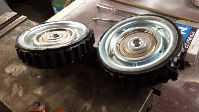 comme je l'ai dit le calcul a été praticable uniquement lorsque j'ai trouvé un principe de roue , ici ,elle seront faite avec des roulement a galet , car je trouvais que les roulement classic ne sont pas très beau .