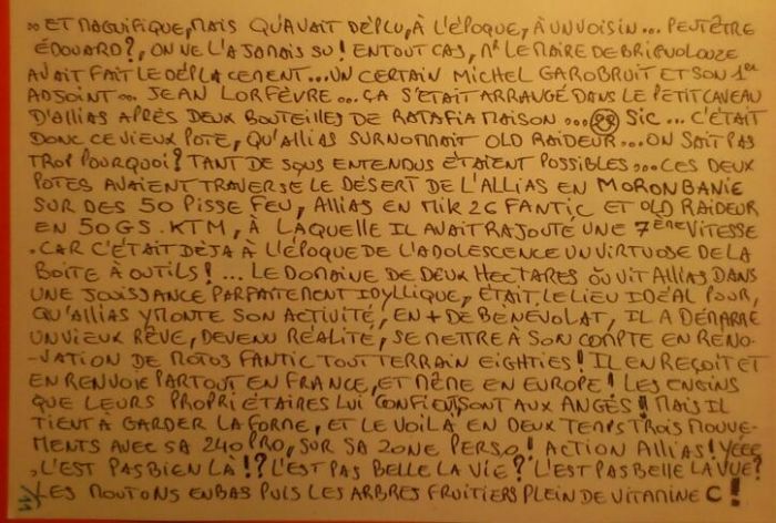POUR LES VISITEURS NON BRANCHÉS MOTO TÉTINES ( PNEUS À CRAMPONS )........DANS CE LIVRE SE TROUVE LES ACTEURS QUI ONT COMPTÉ DANS L HISTORIQUE FANTIC EIGHTIES , PARODIÉS + OU MOINS puis DES MECS DU FORUM....ainsi que des personnages divers et variés pour pimenter l histoire...