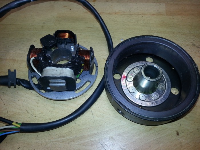 Par contre attention, je déconseille un allumage à rotor interne sur le RCKs, pour la simple raison que le bas moteur du RCKs est dépourvu de volant d’inertie coté embrayage, la seul masse en rotation est celle du volant magnétique, il est donc impératif de garder un minimum d’inertie.