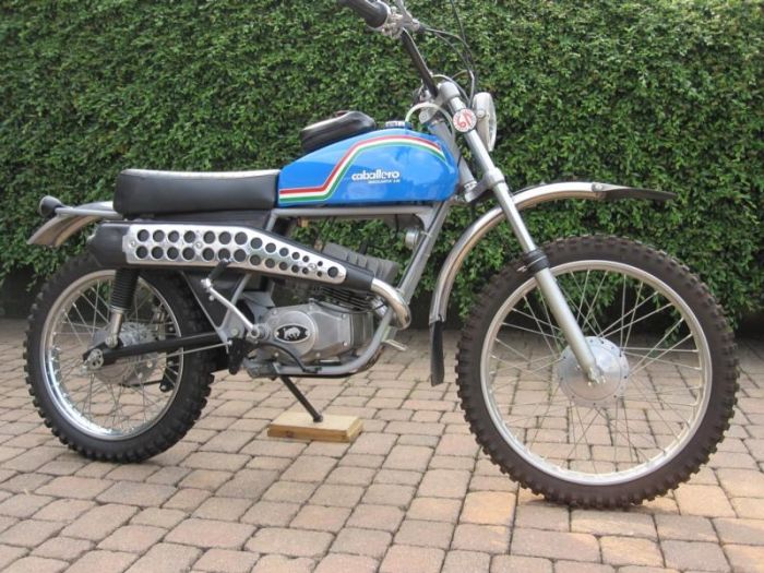 le modele 74 ou 75 (?) reservoir avec plaquette alu "fantic caballero" vissées sur le reservoir + gardes boue plastique.