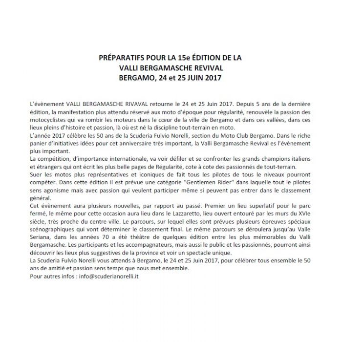 Les "Valli Bergamasche Revival" auront lieu les 24 et 25 juin 2017.