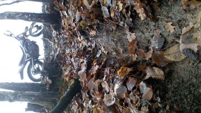 Bon, jsui sorti fr un rare tour rando solo, mais avec comme dirait Chris..  😄  😄 une moto trial pas bien... Donc vs avez compris... Pas Fantic... Désolé c ma seule assurée pour fr connaissance des sentiers avoisinants que je découvre... De l'argile mouillé tripë, qui Ds les parties boisées, Scotch les feuilles de chêne et châtaignier sur les pneus, donnant une texture moquette, rendant les montées de 2 mètres quasi impossible... La gilles lalay classic a portée de main !!  😡.....
