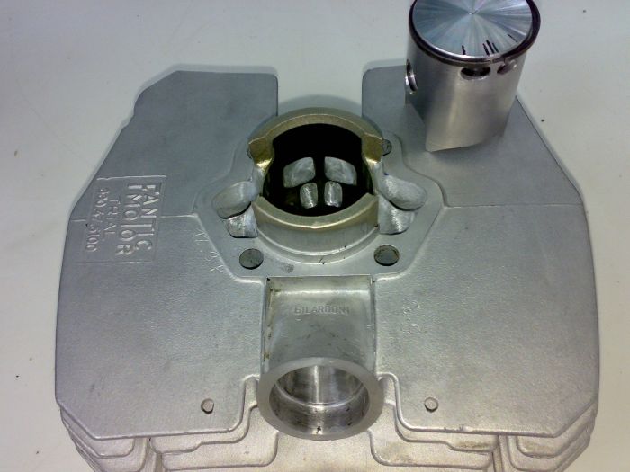 Et bien des années plus tard, j'ai trouvé sur le net une photo d'un cylindre Fantic où un italien avait fait la même chose au-dessus de l'admission. 2 gorges toutes simples. Comme sur ce cylindre de 50 trial tapé.