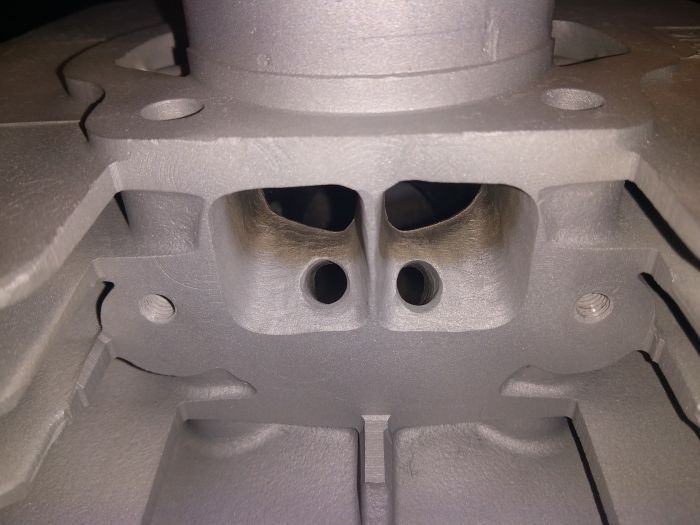 Mais alors, Gégé, ma question est : à priori, quelle différence y a-t-il entre faire 2 trous qui partent de la lumière d'admission, comme sur le cylindre que tu montres, et faire 2 gorges au-dessus de l'admission, et encore, plus sioux, faire des canaux qui partent des transferts latéraux pour aller déboucher au-dessus de l'admission ?