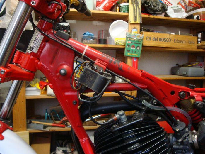 Ahhh...que ne ferait on pas pour sa p'tite femme chérie...adorée...vénérée...idolatrée..bref qu'on a envie de caliner....et même après une ptite séance trial free rando....!!??....hein le coquin vigor!!.....je préfère t'accompagner..ma chérie...Desfois que yai une panne...j'ai la clé de dépannage universelle....vilain coquin vigor..mdr!..........ta bobine est bien mise..le régulateur peut être mis ailleurs...le principal est qu'il soit branché en parallèle sur ton + principal arrivant de ton allumage......il est pris dessus et absorbe tout simplement la sur tension.....je peux pas te mettre de foto...je SUI pas équipé pour ...depuis les changements technologique du forum...j'imagine que t'as regardé mon topic...monter un 250cc ( 303) sur un 240 pro......