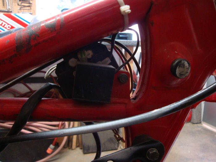 j ai un regulateur branche sur la cadre (ok) et qui a un fil en sortie....ou brancher ce fil (bobine (ou?), coupe-circuit, phare avt.....)????????