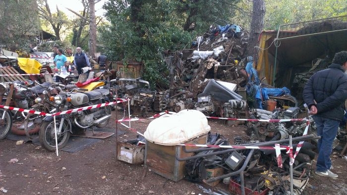 Le week-end dernier se déroulait à Fayence (dans le Var) la vente aux enchères de l'extraordinaire mais bien triste collection de Gérard Gombert dit La Gombe. Un sacré personnage marginal passionné de voitures et motos (400 lots !). Mais il a fallu des heures et des heures pour défricher afin d'accéder à l'épouvante. Comment etre à la fois si passionné et laisser pourrir de telles merveilles !