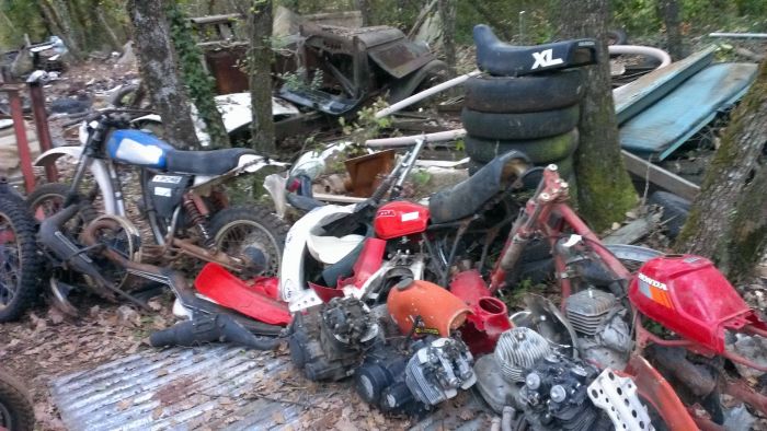 Y compris des moteurs NORTON (et autres) préparés qu'il a laissé pourrir à l'extérieur comme bien d'autres choses... 😡