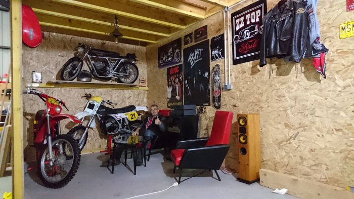 Ca fait drôlement envie de se laisser aller dans ce local de VIEUX GARÇONS... Ya du cuir, de la belle bécane, des posters qui indiquent du gros son 😘... 👍