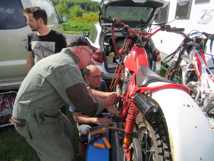 Même pas descendue de la remorque, la 125 de Romain est de suite prise en charge par not' Cantalou aux doigts de fée (c'est d'ailleurs les seules choses qui lui proviennent d'une fée 😄 😄 )