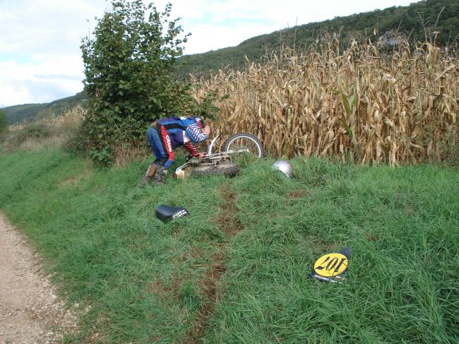 Pour un peu, on dirait qu'il foutait à coups de pied à la moto  😄