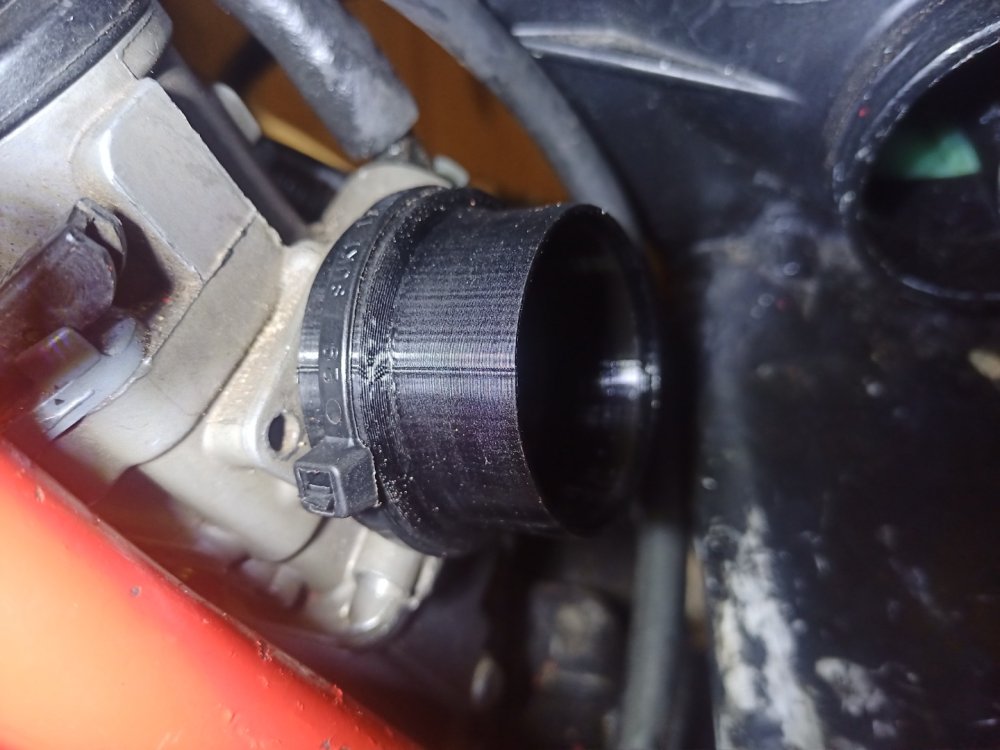 Et pour moins galérer pour remonter la durite d'air, j'ai fait cette pièce en impression 3D à fixer sur la sortie de la boîte à air:
