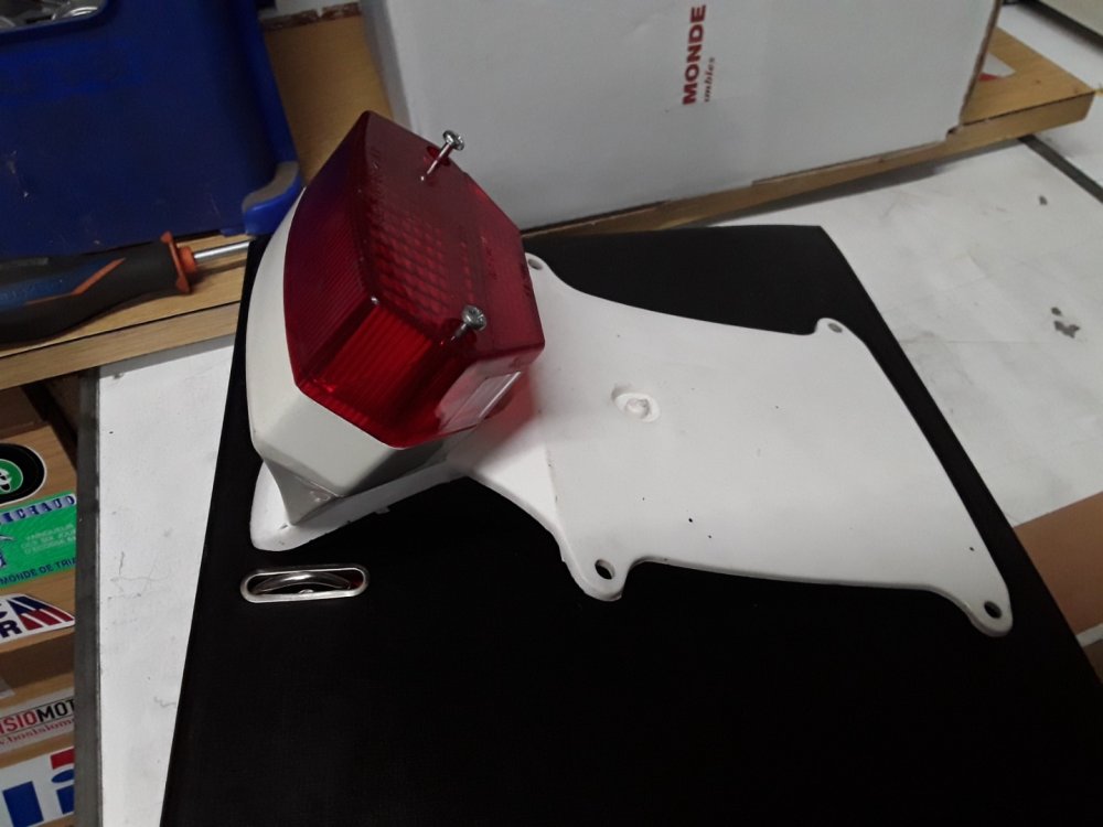 Donc je pense que ce feu ainsi que le support de plaque, ayant servis à l’homologation, était fourni avec la moto neuve sans être monté !
