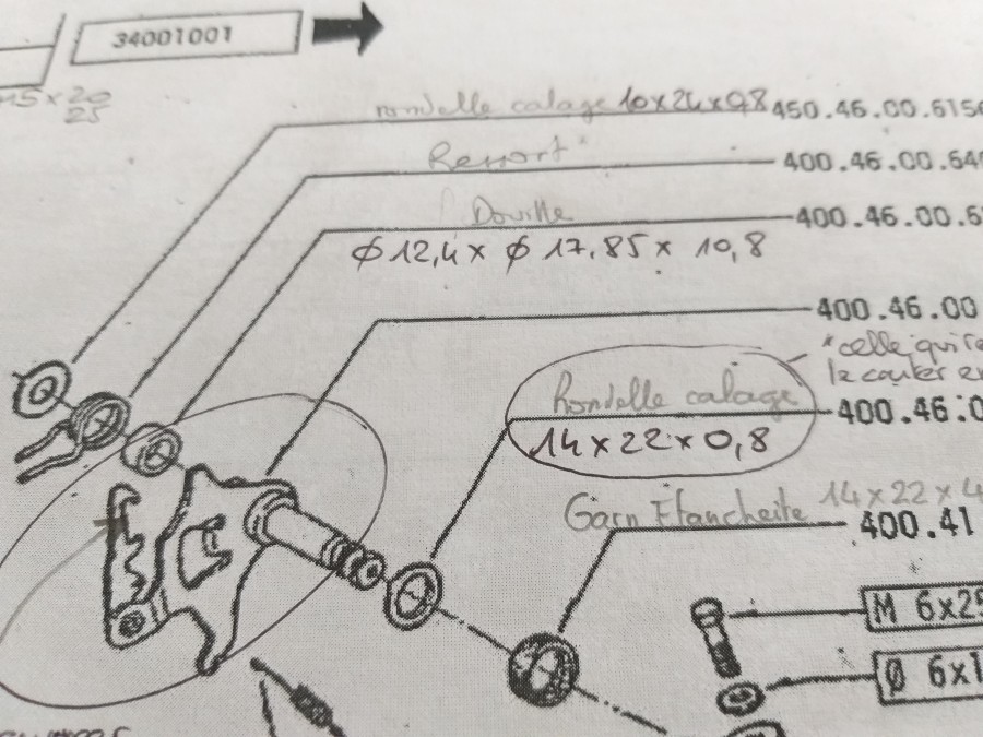 je suis en train de remonter mes carters coté sélecteur avant de fermer le carter j'aurai bien vu une rondelle sur ce meme axe (sinon l'axe va etre en contact avec le carter )? j'ai beau regarder je n'en trouve pas ????