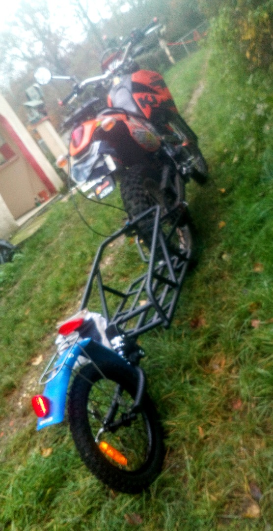 Salut les gaziers...desole pour l'engin non fantic.. qui va traîner.. cette micro remorque...mais ce concept est faisable, sur nos trial..fantic