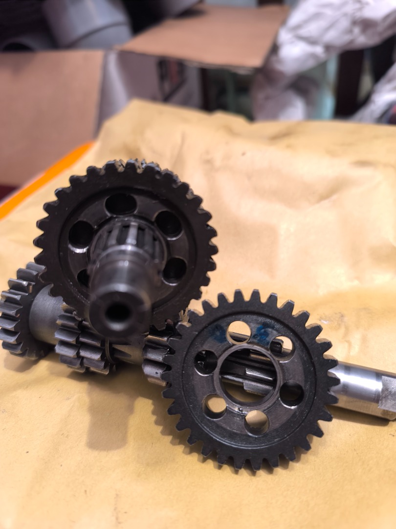 Évidemment le pignon de 2 est explosé. J'ai trouvé et acheté un arbre primaire complet neuf. Trouver ça déjà est un exploit! J'ai un pignon de secondaire a la bonne démul, mais incompatible sans usinage. Si vous entendez parlé de ce fameux pignon en 30 dents je suis preneur. Merci   😀