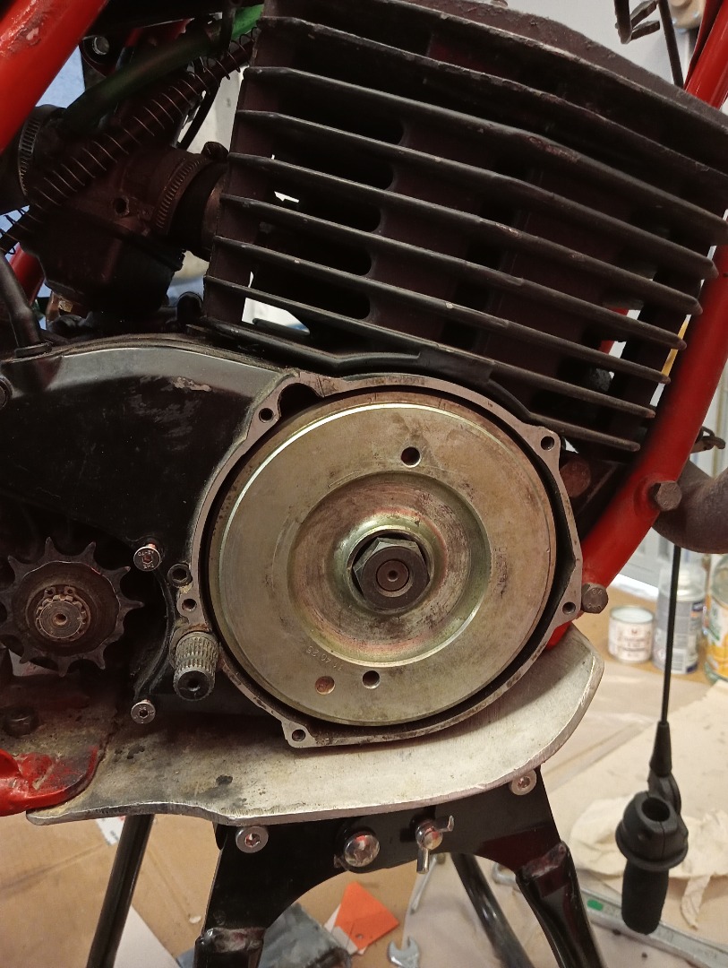 Bonjour , depuis l'achat de mon 240 de 81 je cherche à éclaicir un gros détail . Le cadre , les demi carters sont estampillés FM 450  et 212 cc  mais le carter d'embrayage a la plaque FM 403 , le carter d'allumage plastique ressemble à une série plus récente . la bobine est une Ducati bleu et le carbu est un 26 .  Je n'ai pas encore vérifié le diamètre du piston mais je m'attends à tout . Vous en pensez quoi de cet hybride ?