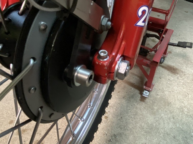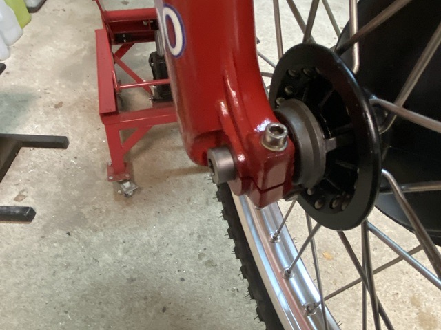 Du coup, comme l’entraîneur est plus large, mon axe de roue trop long rentre moins, et au final, ressort moins de l’autre côté 😁