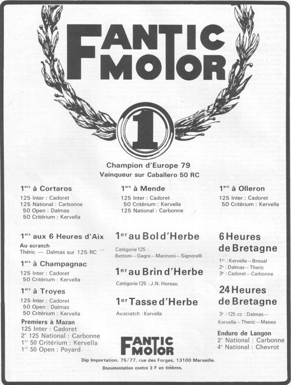 Moto(s) : Fantic 125 rc/ks Fantic 240 pro