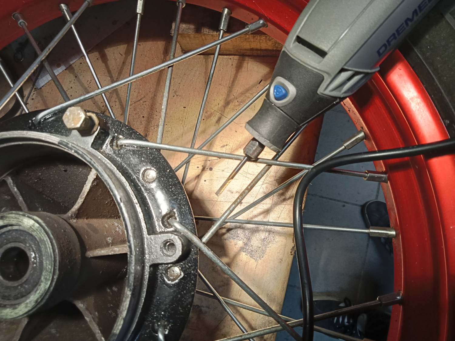 Les rayons , peuvent gener la pose d'une rondelle , avant l'ecrou...suffit de mettre un coup de meuleuse , a la rondelle , pour qu'elle épouse l assise....ça ne se voit pas..
