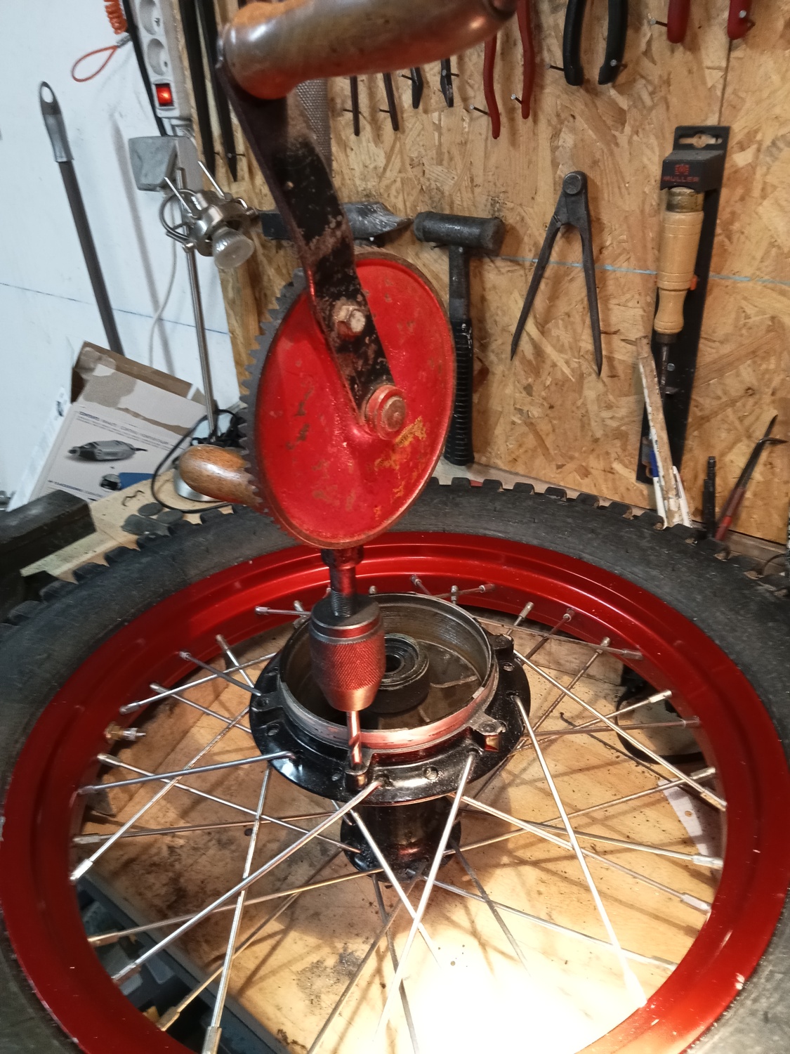Mais repercer en 8 moyeu et couronne , et remmencher 8 boulons et écrous freins .cesr rapide et solide  👍