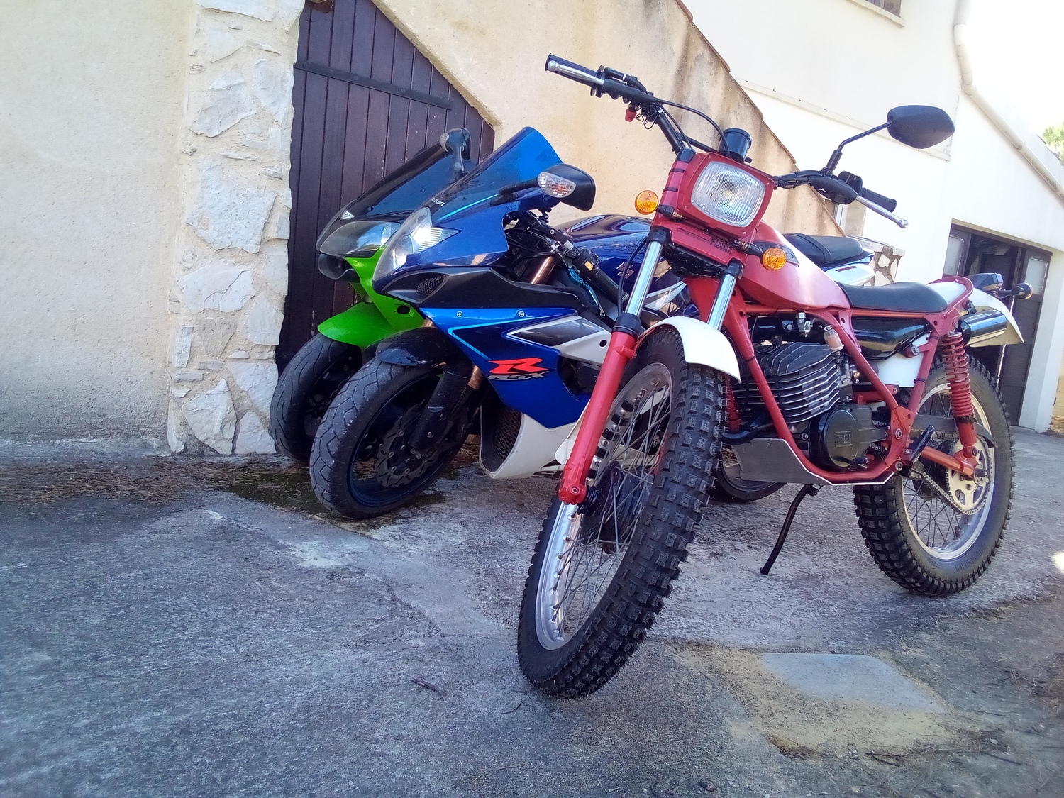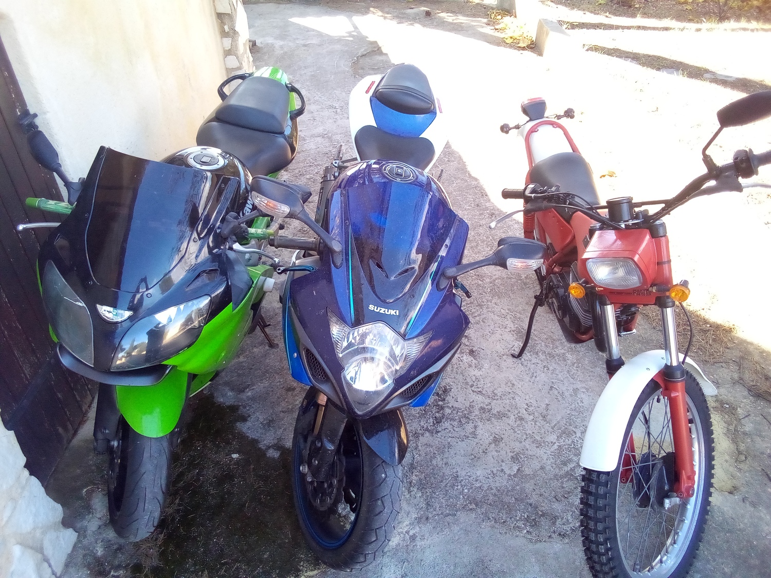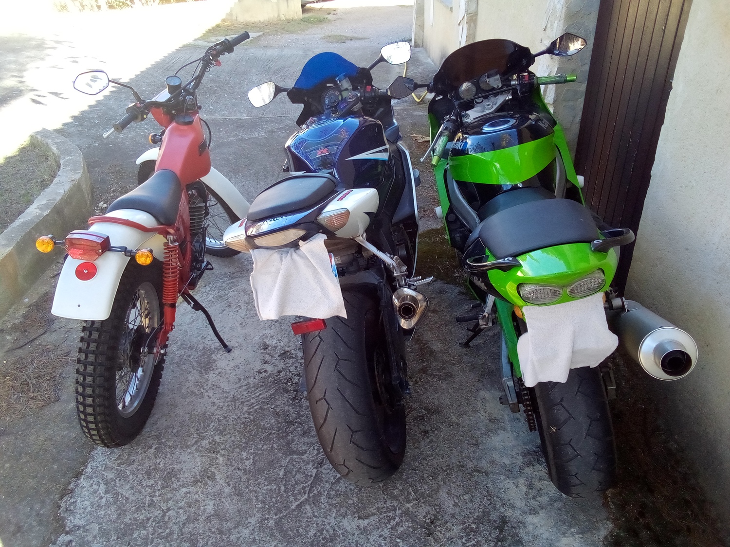 Je vous présente la bête aux coté de ses grandes soeurs ZX6R(2000) et GSXR1000(2005)  😍
