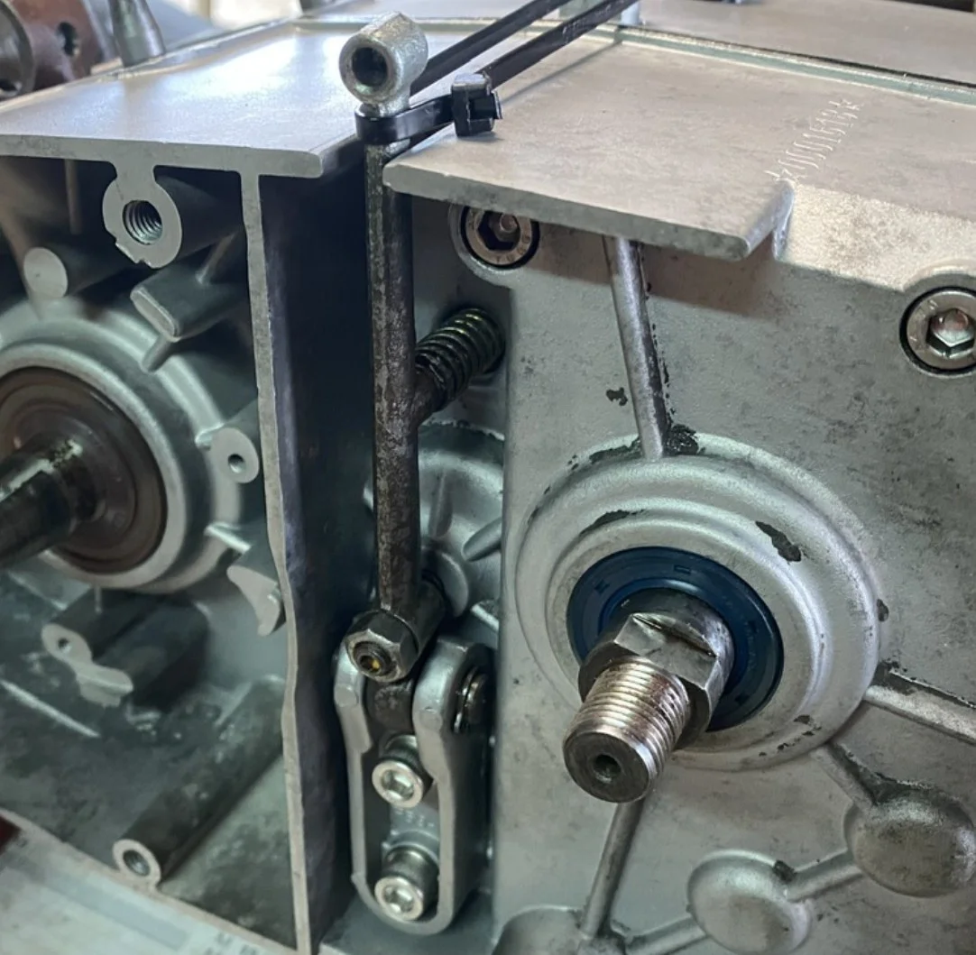 Cela a eu pour effet de détériorer le joint thorique et de causer une petite fuite d'huile à la longue par l'axe du kick.