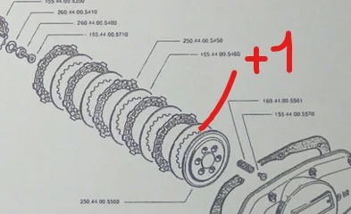 La suite est simple, il manque un disque, il y a moins d'épaisseur, la pression n'est pas suffisante, l'embrayage patine.