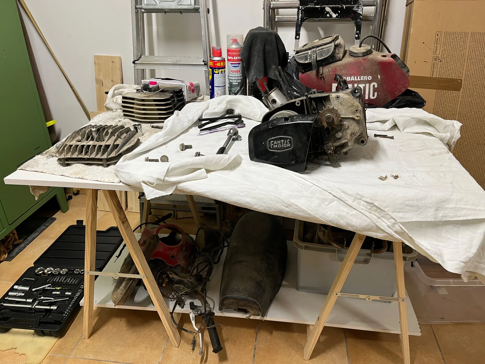 Bonjour à tous! Merci pour l’accueil sur ce forum qui va très certainement être d’une grande aide.😁 J’ai recuperé la Fantic 125 Caballero de 79 (FM260) de mon père, et compte bien la remettre en route et rouler! Pour le moment, je l’ai mise en pièces, commencé à nettoyer, et vais débuter la restauration. V à tous