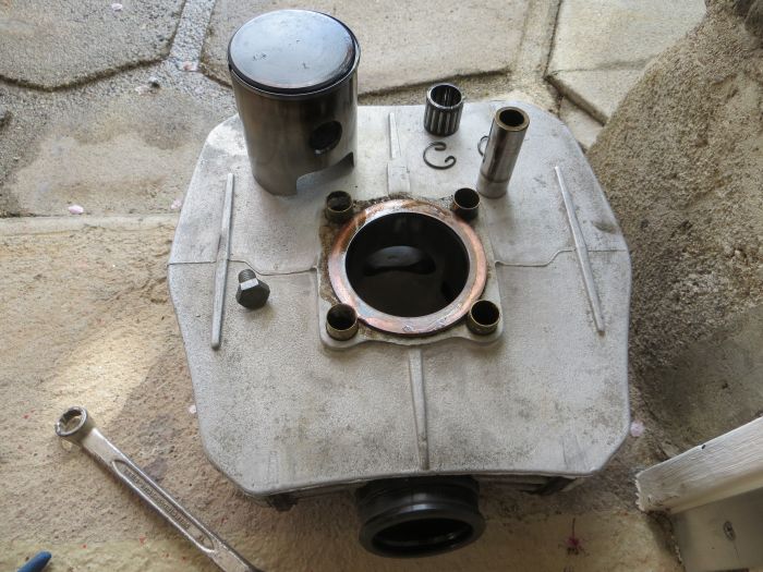 Mon cylindre à la lettre D, une soudure à faire sur la lumière d'échappement plus nikasil, et en ce qui concerne mon piston il est neuf et en bon état.